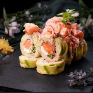 Base de arroz, queso crema en cubos, palta abanico, cortes de salmรณn atlรกntico, camarรณn, cebollรญn y sรฉsamo. | $9.000 | Max: Min: 1 Step: 1 |